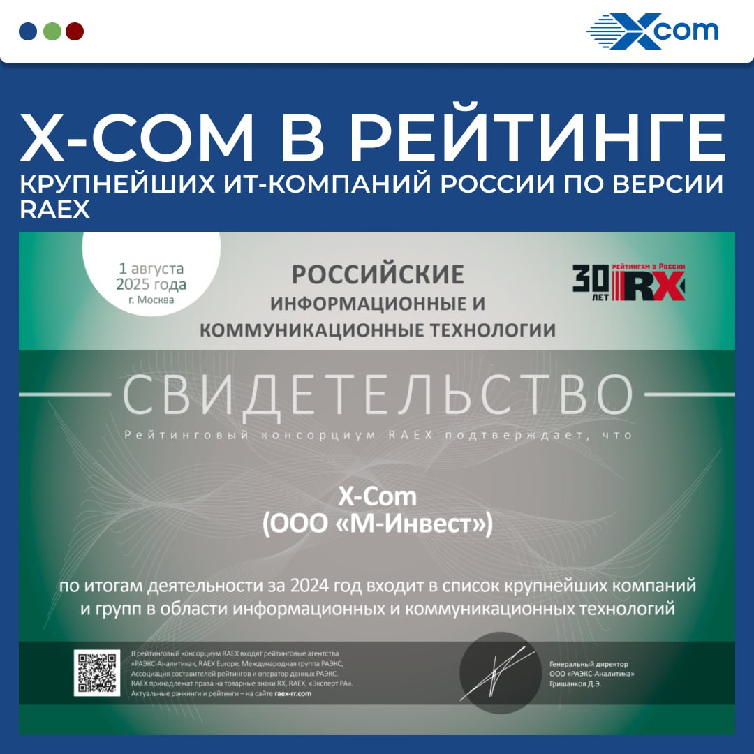 ГК X Com вошла в рейтинг крупнейших ИКТ компаний RAEX. Благодарим команду за вклад в успех и устойчивый рост.