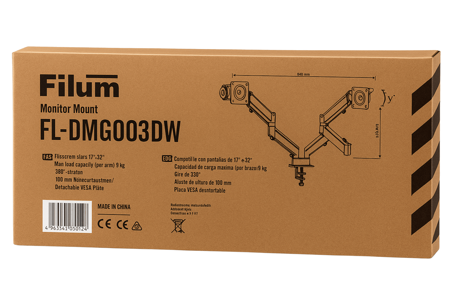 Подробно показали процесс сборки кронштейна Filum FL-DMG003DW — от распаковки до установки на стол.