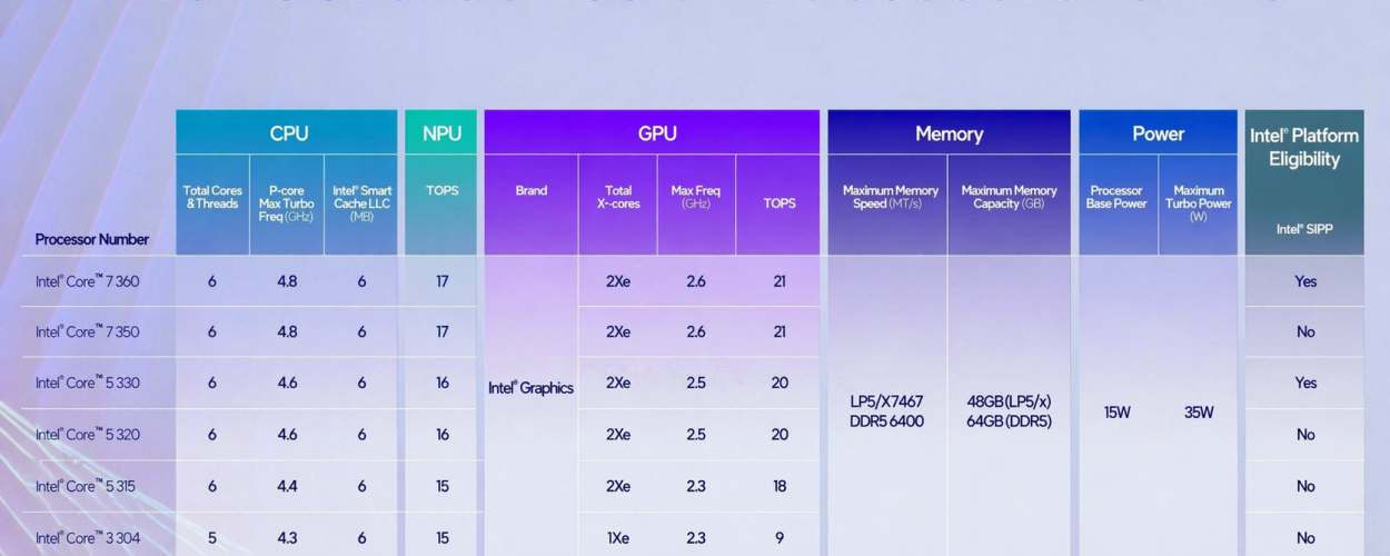 Старший процессор серии, Core 7 360, получил 6 ядер и в материалах Intel проходит как верхняя модель линейки Wildcat Lake. Формально это может уступать по вау-эффекту более многоядерным решениям, но в реальности шесть ядер для большого числа рабочих задач — это уже комфортный уровень. Особенно если речь идёт не о специализированных тяжёлых вычислениях, а о почте, браузере, документообороте, облачных сервисах, видеосвязи, офисных пакетах, аналитике в таблицах и нетребовательной многозадачности.