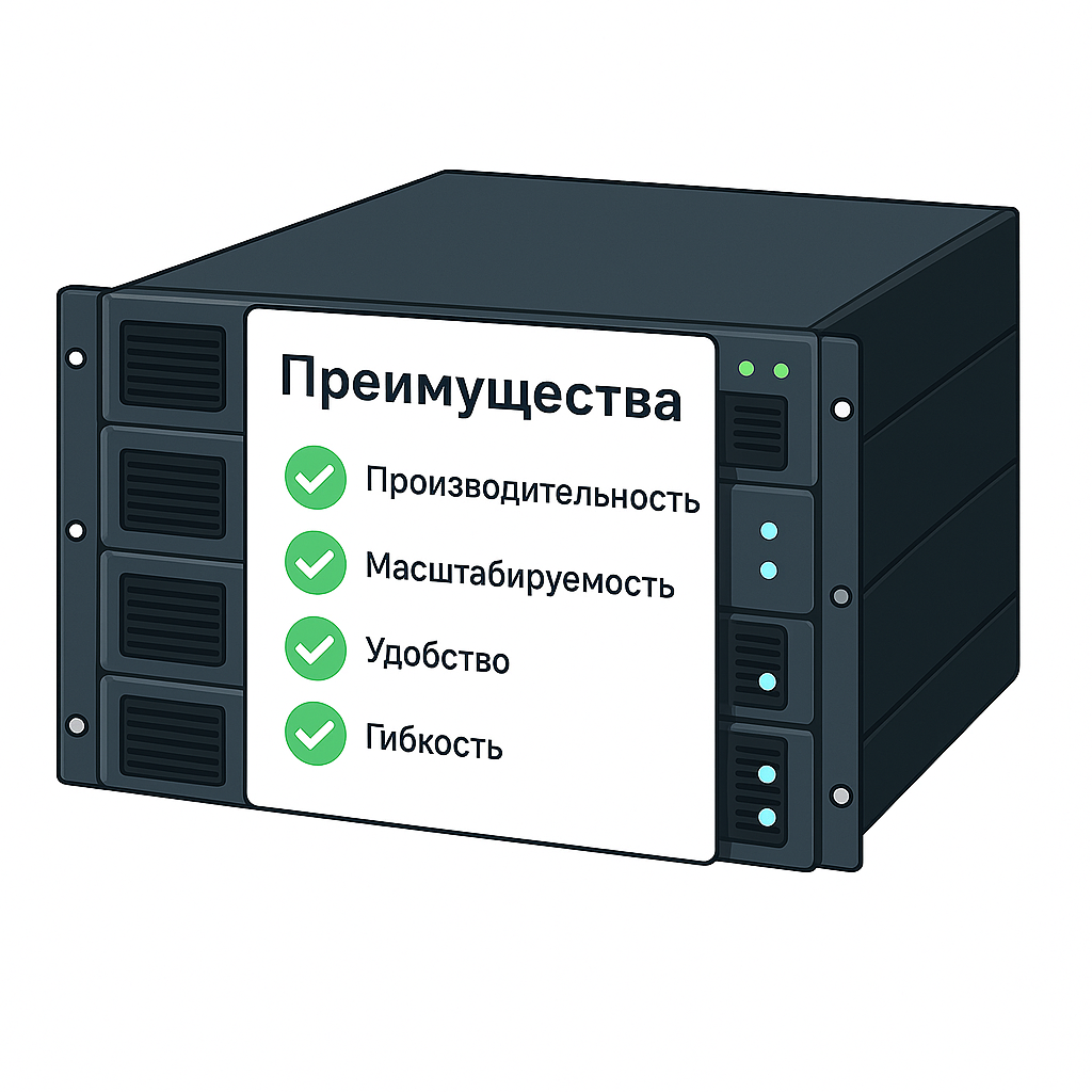 Масштабируется до десятков тысяч дисков, обеспечивает отказоустойчивость и высокую производительность для любых задач: от баз данных и ИИ до медицины и видеонаблюдения.