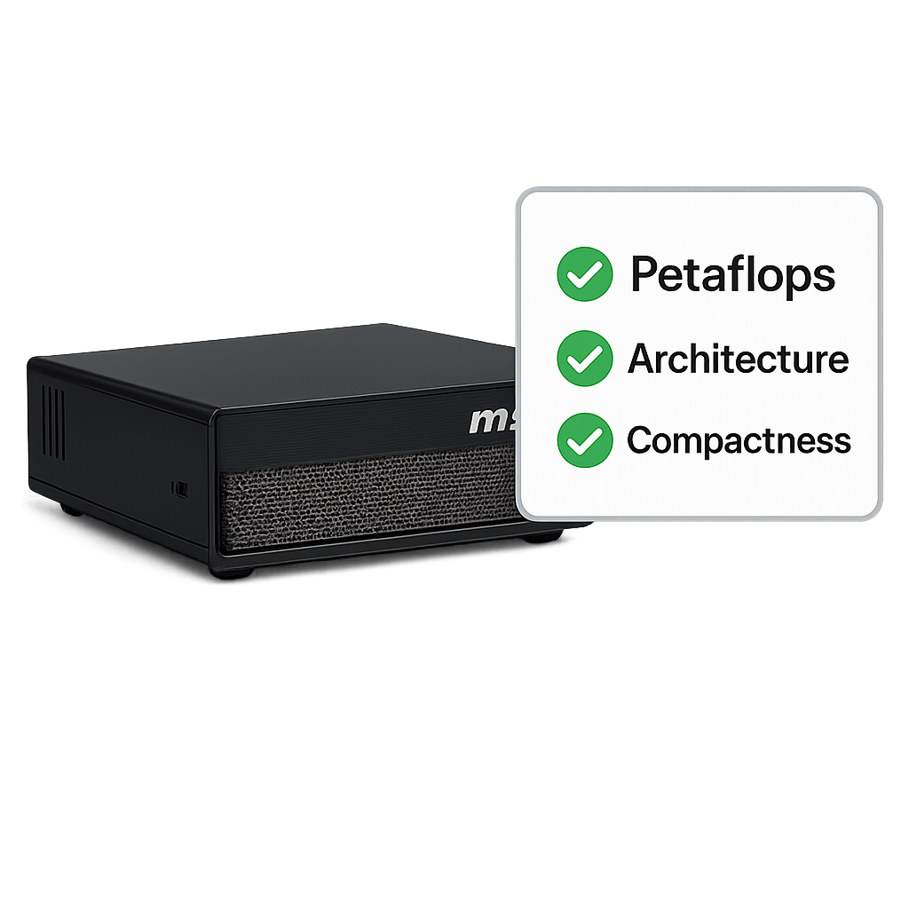 Суперкомпьютер MSI предназначен для задач уровня дата-центров. Компактное устройство с петафлопсом мощности открывает новые возможности для ИИ, Big Data и высокопроизводительных вычислений.