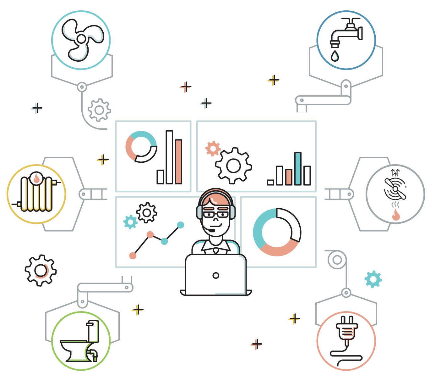 Автоматизация управления отопительными системами – обязательна. Не менее важны такие решения для систем вентиляции и кондиционирования, освещения, электроснабжения и др. Сложность проектирования и построения таких решений зависят от их функционала и количества управляемых объектов инженерной инфраструктуры.